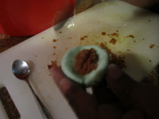 Lubangkan ditengah nya untuk meletakkan sedikit gula melaka