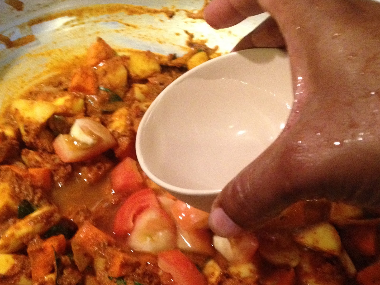 i like to add some vegetable to my prawns curry potato,carrots,tomato,red and green chilies,
